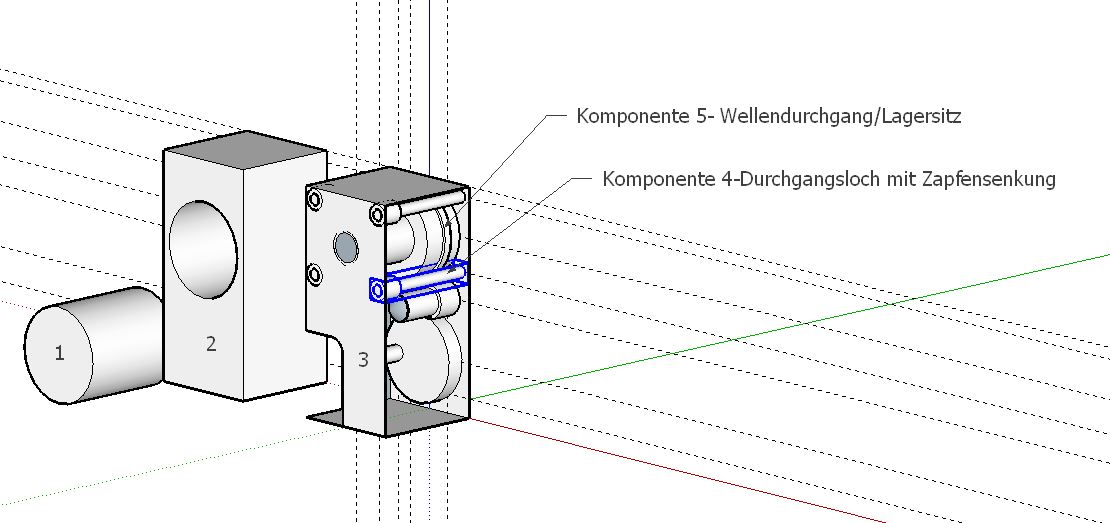 Lagersitz(Komp. 5) gezeichnet, nun mein Problem: ich schaffe es einfach nicht die Komponenten richtig zu positionieren, immer bleiben Sie in der Vorder - und/oder Rückansicht undurchsichtig, ich hoffe man versteht was ich meine, gibt es evtl. einen besonderen Trick welcher mir bisher verborgen geblieben ist, ich würde mich freuen, wenn mir jemand einen Hinweis geben könnte.