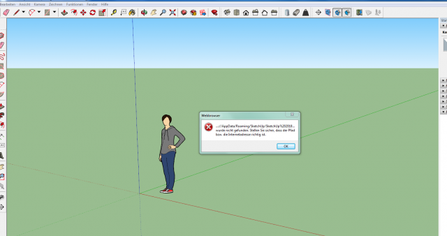Der Plug-In lässt sich zwar in Sketchup aktivieren und erschient danach in der Symbolleiste, allerdings erscheint beim benutzen folgende Fehlermeldung.