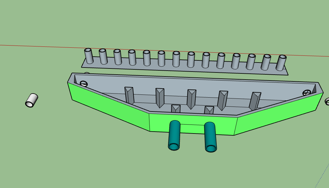 ich möchte mir einen Wasserdruckverteiler selber modellieren und dann 3D ausdrucken lassen. 2 Pumpen mit Schlauchinnendurchmesser 6mm sind der Wasserzulauf. Der Verteiler soll 15 Abgänge mit Schlauchinnendurchmesser 5mm haben. SIEHE BILDER. Ich schaffe es nicht, die Wanddurchläufe zu modellieren, so dass quasi ein "sauberer Tunnel" in der Wand ensteht, Bin Anfänger. Wäre nice, wenn einer helfen könnte(: