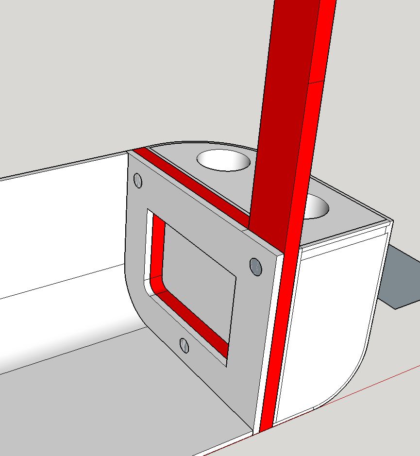 Ich hoffe es klappt auf Anhieb, ein Bild hochzuladen. Wenn ja, dann soll an den drei Stellen wo sich die kleinen Kreise befinden jeweils ein Loch durch alle drei Schichten (weiß - rot - weiß) entstehen.