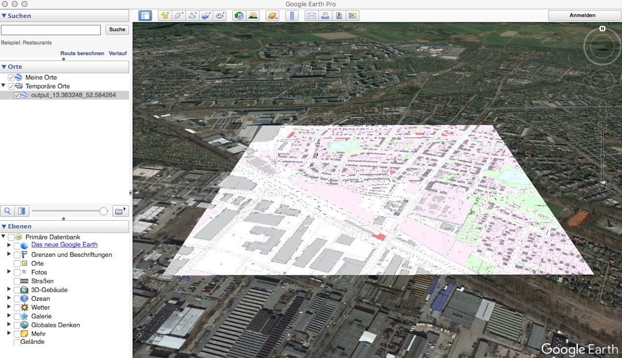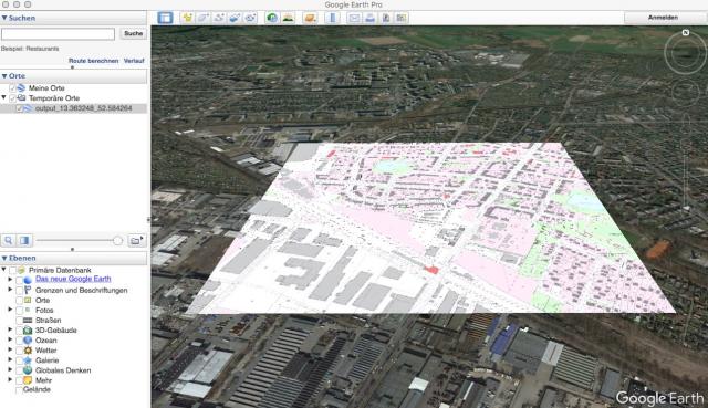 Google Earth zeigt diese kmz perfekt an (Stadtplanausschnitt auf Weltkarte)