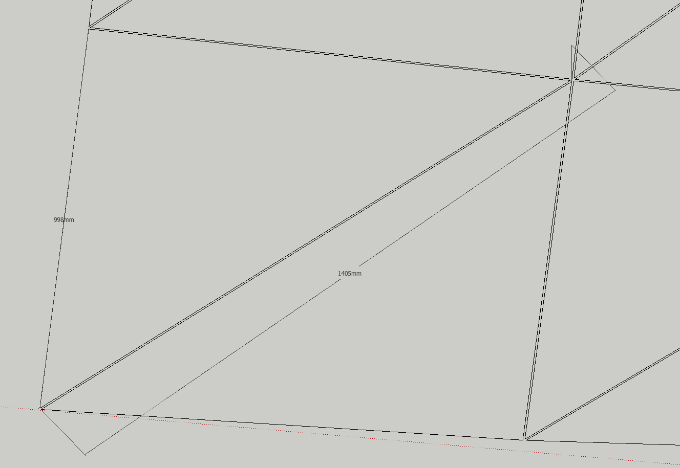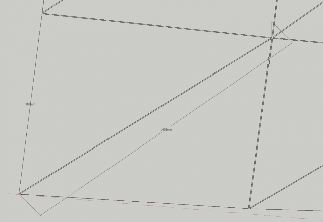 Und wenn ich den Anfangspunkt einer Diagonalen Kante mit dem Werkzeug anklikke und die Messlinie zum Endpunkt ziehe, wird entweder der horizontale Abstand oder der vertikale gemessen, oder wieder horizonale Strecke, nie aber die Kantenlänge.