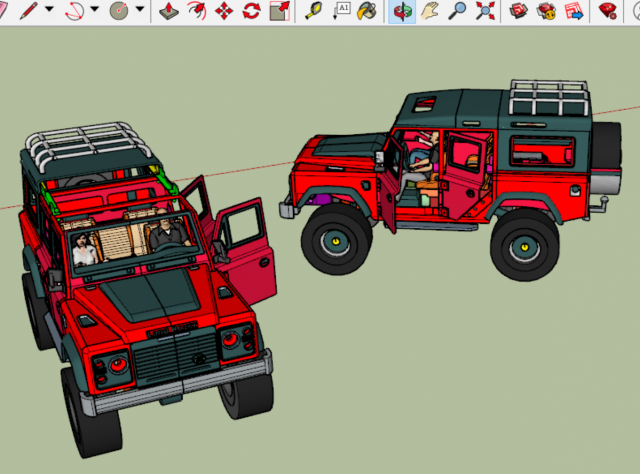 Gerade wurde ein Land Rover Defender fertig. Hier der Entwurf in SketchUp. Etwa 50 cm lang ist das Modell.