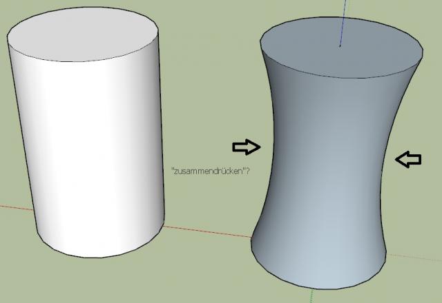 Wie kann man, ggf. mit welchem Tool, einen Körper mittig (oder an gewünschter Stelle) "zusammendrücken"? Bei einem Zylinder kann man das mit Punktbogen und FolgeMir bei der Erstellung (siehe Screenshot), bei anderen, unregelmäßig geformten, Körpern geht das aber nicht so einfach, speziell nachträglich nicht.