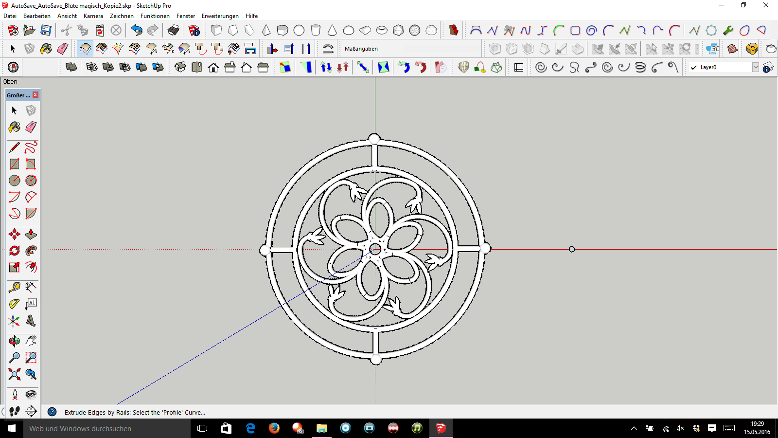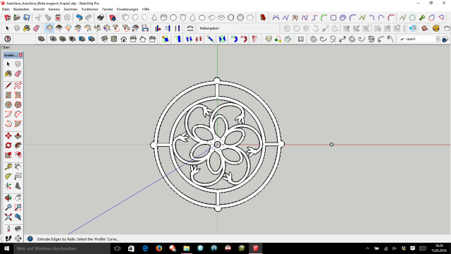 Eine importierte Geländekarte zeigt u. a. Straßenverläufe mit Rundungen, die mit den Normalwerkzeugen von SU make 2016 nicht nachzuzeichnen sind (zu kleine oder zu große Radien, Ovale usw.). Auch das Freihandwerkzeug ist dafür nicht brauchbar, es erzeugt zìttrige Linien und rastert an ungewollten Stellen an.