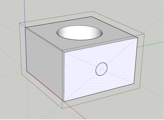 Ich möchte in einem Quader 2 zueinander senkrechte Bohrungen anbringen, wobei alle Wandungen erhalten bleiben sollen.