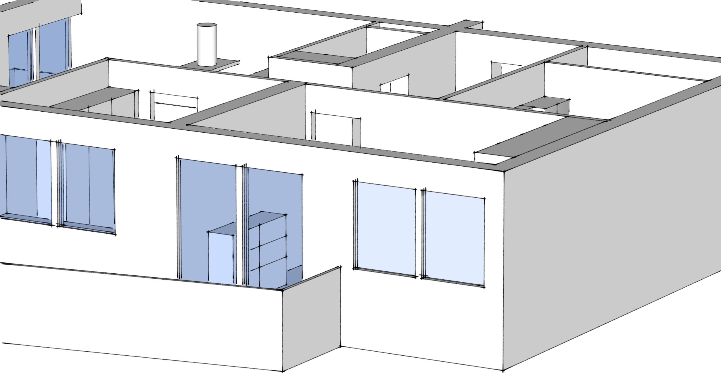 Oberfläche beidseitig auf Glas mit 20% Opacity. Die linken beiden Fenster (siehe Screenshot) sind von innen und aussen transparent, nur das rechte will einfach nicht - obwohl ich es schon mehrfach neu gezeichnet habe.