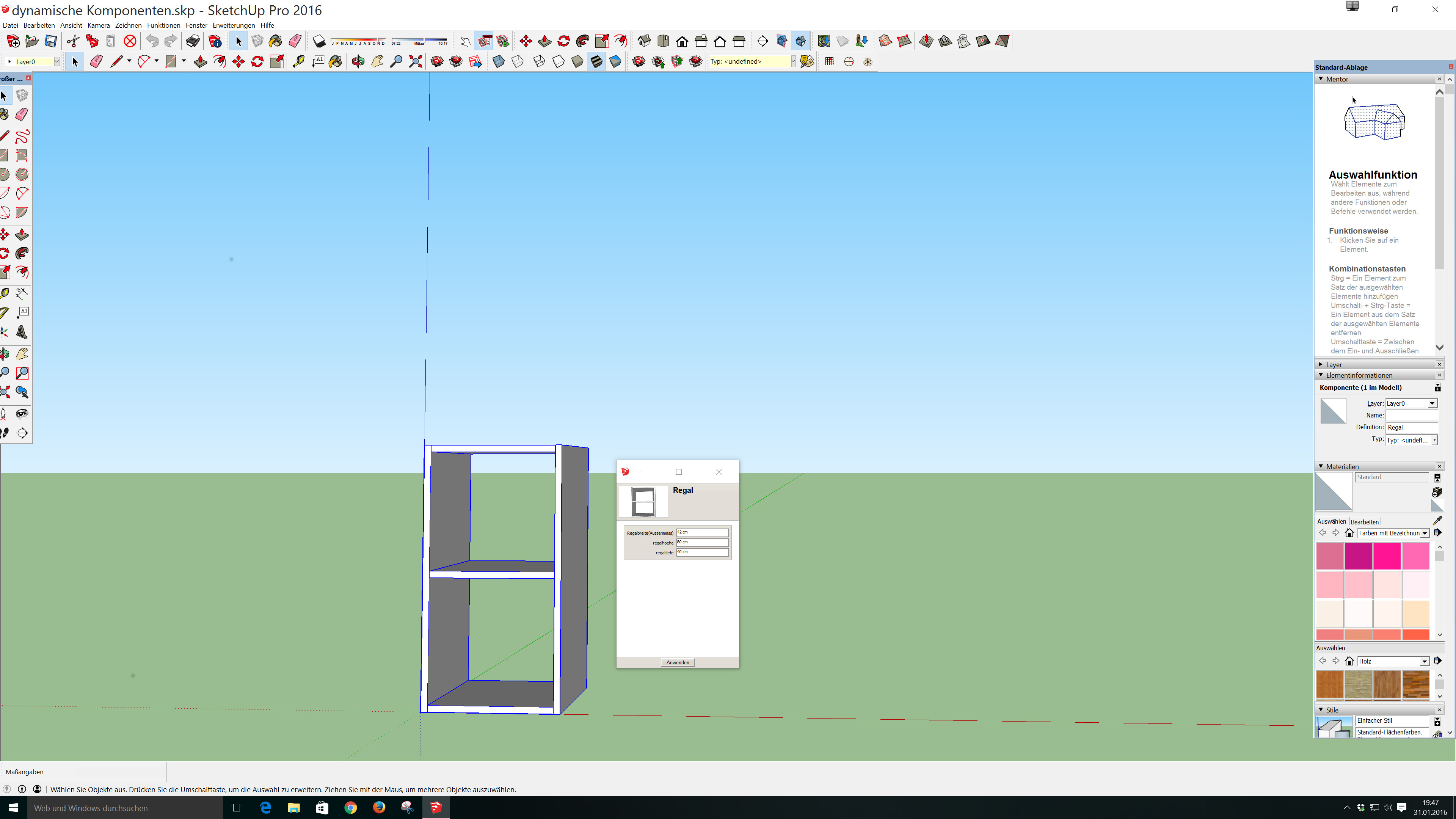 Die ließen sich jetzt mit dem Skalierungstool relativ problemlos so in etwa auf die originalen Abmessungen bringen, aber es war etwas umständlich, weil ja in den Datenbanken natürlich nur Breite, Länge und Höhe stehen. So musste ich jeden dieser Werte einzeln auf das Sollmaß bringen. (Das "Modellauto" musste ich sogar vorher in ungefähr acht Einzelschritten maßstäblich in der Diagonale aufziehen, um es erst mal grob anzunähern, damit es nicht unhandlich "spaghettifiziert" wurde.)