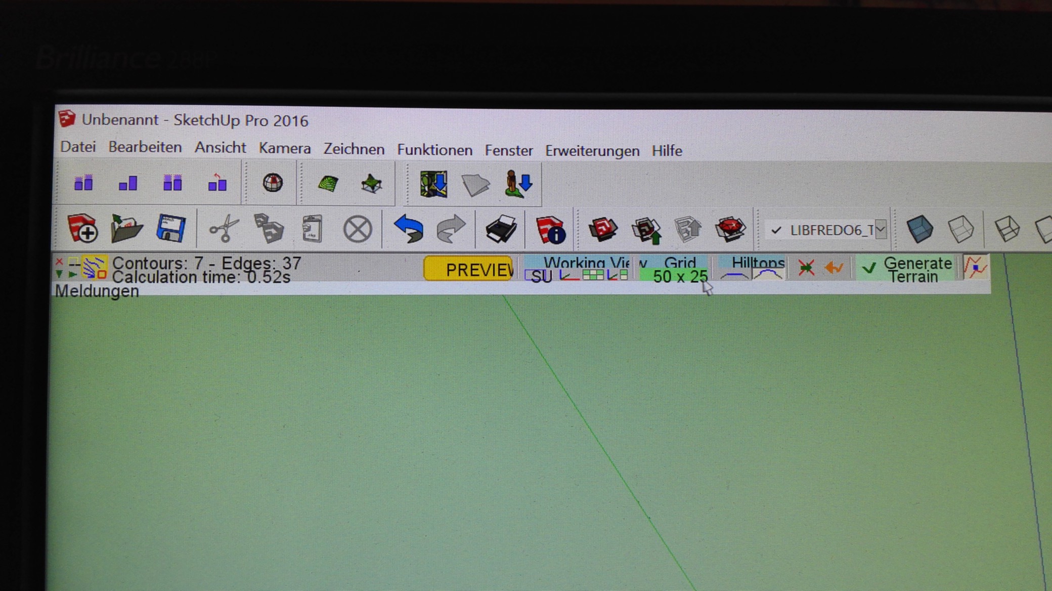 Hallo, ich möchte gerne eine kleine Insel mit einem Gebäude drauf zeichnen, umgeben von einem Wassergraben. Habe einige Videos angesehen (leider nur englische) in denen prinzipiell der Umgang mit der Sandkiste erklärt wird. Ich sehe bei meinem Sketchup auch unter "Zeichnen" und unter "Funktionen" jeweils Kommando-Menüs für Sandkiste, habe auch versucht mit der äusseren Umrandung meines Planes zu beginnen, mittels "neue weiche Fläche" - dann kriege ich auch ein "Planrechteck" - aber alles was ich danach versuche, landet in einer Meldung "Konturen auswählen".