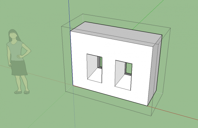 1. Schritt: Den Grundriss eines Hauses in 2D anlegen (Bauzeichnung, Draufsicht) mit Bemaßung (manuelle Maßangabe aus der sich die einzelnen Details, Räume, Wände, Durchgänge ergeben).