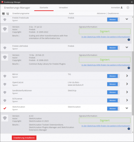 Gibt es für SketchUp 2017 eine Erweiterung, mit der man den Winkel zwischen zwei Flächen bekommen kann?