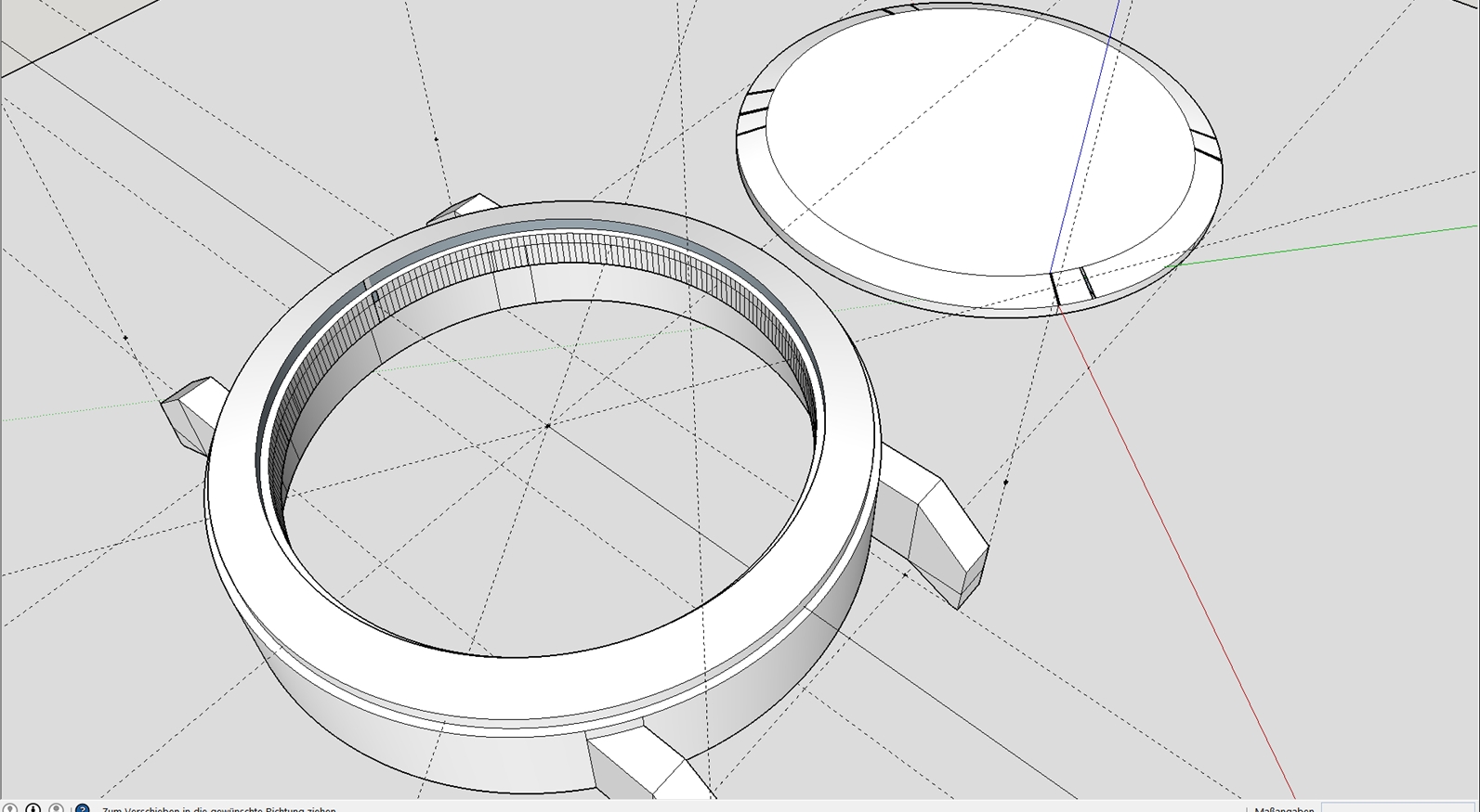 Und zwar schaffe ich es nicht, die abgeschrägte Fläche flächendeckend zu extrudieren. Es bleiben mir immer die Lücken. Ich verstehe zwar, warum die an diesen Stellen sind, aber ich weiß nicht, warum sie sich nicht schließen. An den Stellen sind sie deswegen, weil es sich um einen Uhrengehäusedeckel handelt, dessen Fläche ich kopiert habe. An den Stellen, an denen jetzt Lücken sind, waren beim Gegenstück die Bandanstösse.