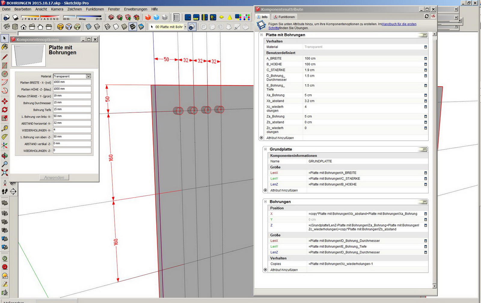 Wie bekomme ich mit dynamischen Komponenten eine Wiederholung von z.B. Bohrungen in zwei Richtungen hin?