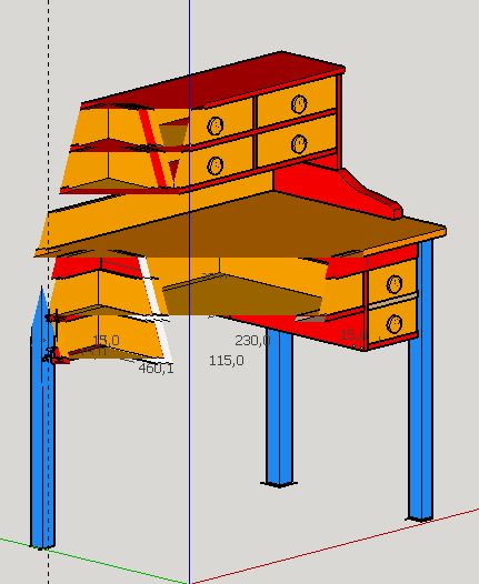Meine Frage: gibt es eine Möglichkeit, durch eine Sketchup-Funktion (manuell geht es natürlich auch, wenn auch umständlich) die 3 "Tischbein" durch das "Tischbein 2" zu ersetzen?