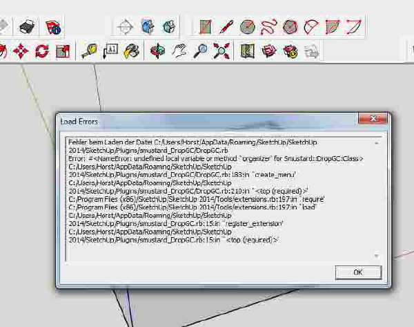 Was mache ich falsch oder was will mir Sketchup mit dieser Fehlermeldung sagen?