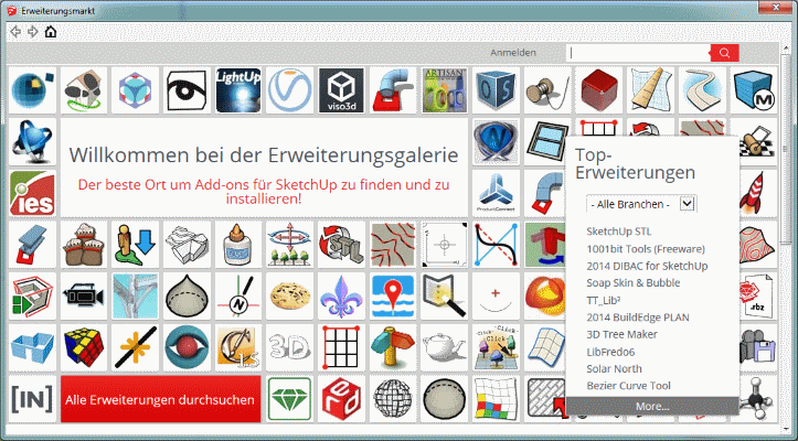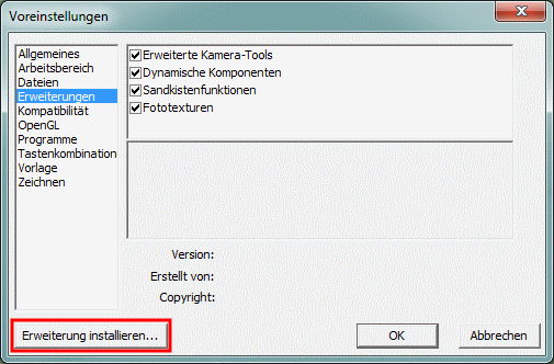 - Mac OS: "SketchUp > Voreinstellungen > Erweiterungen > Erweiterungen installieren..."