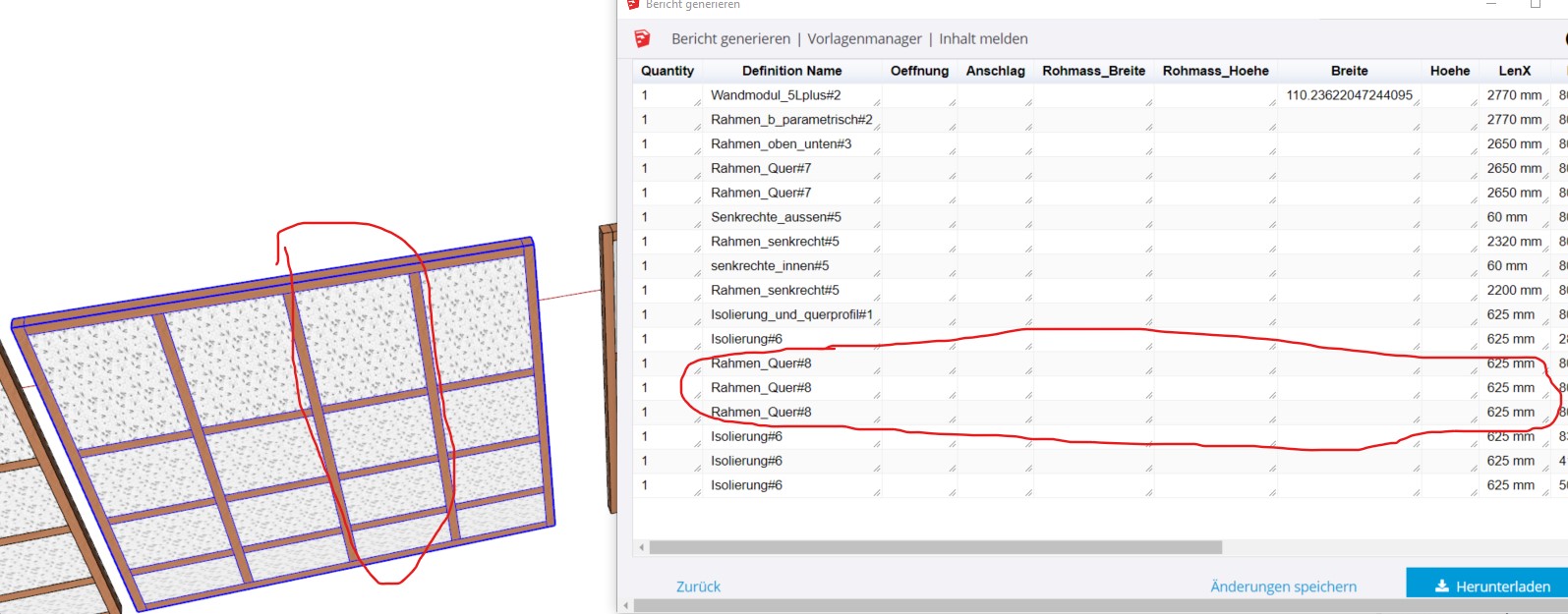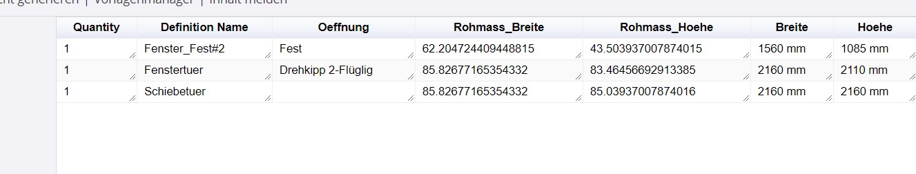 ich möchte einen Bericht über Fenster/ Türen generieren, bekomme teilweise aber sonderbare Daten heraus: