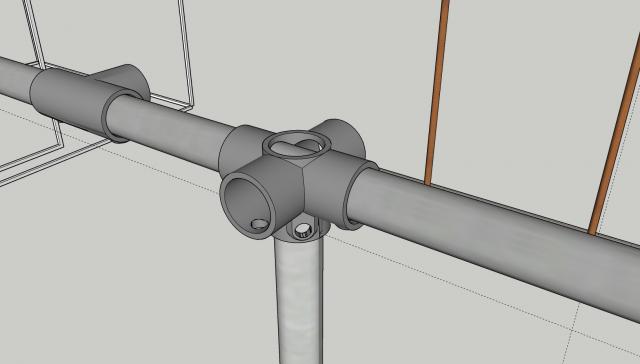 Ich plane ein kleines Gehege auf meiner Terrasse. Dieses besteht aus einem einfachen Stecksystem aus Metallrohren und Rohrverbindern. Die Metallrohre erstelle ich in Sketchup schnell selbst. Simple enough. Die Rohrverbinder bekomme ich als Modell von dieser Seite.