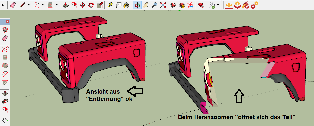 Beim Heranzoomen "öffnet sich das Teil" bzw. man schaut hinein. Auch wenn ich aus mm-Bereich in cm-Bereich skaliere. Detailarbeiten sind so fast nicht mehr möglich. Hat jemand eine Erklärung bzw. einen Tipp wie ich das abstellen kann?