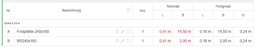 Ich würde gerne die Länge von 14,50m in der richtigen Spalte haben und die Dicke von 0,24m da wo sie jetzt steht. Siehe beigefügte Hardcopy.