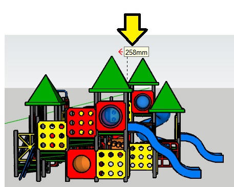 Die Tischfläche (646 x 492 mm) ist größer als die Komponente und in die Mitte des Tisches habe ich (als Landeposition) ein Rechteck mit 440 x 358 mm gezeichnet.