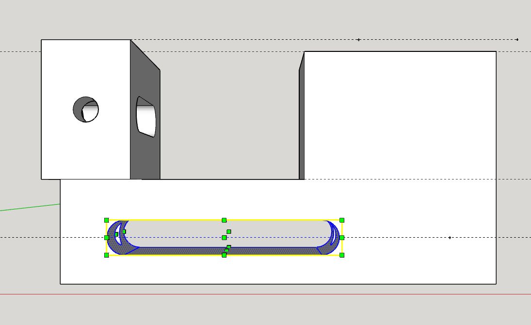 ich bin ziemlicher Sketchup-Anfänger (Browser-Version) und habe versucht, in einem Holzbrett eine Lochreihe einzubauen, vergleichbar mit z. B. dieser Anleitung. Allerdings klappt das ganze nicht wie gedacht. Meine Schritte:
