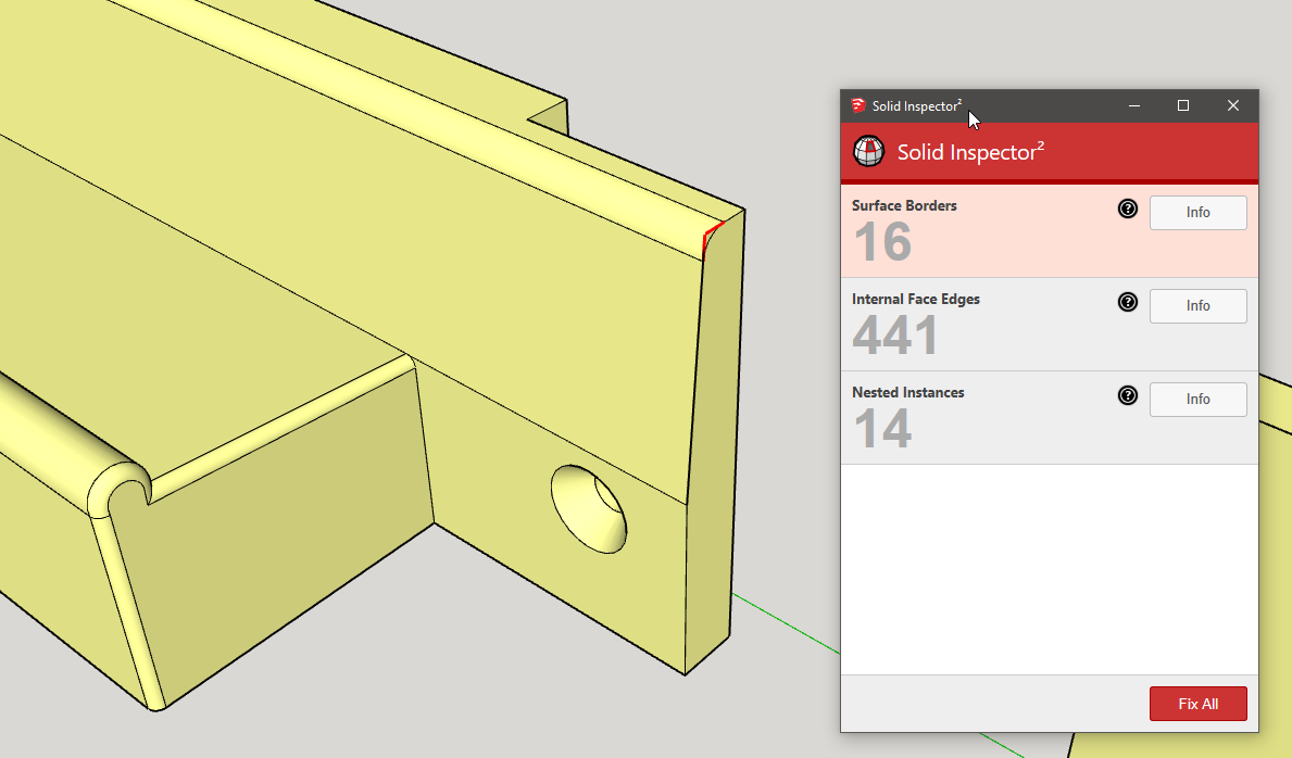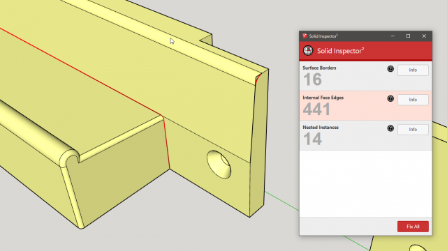 Wie gehe ich mit Solid Inspector richtig um, was ist mir den roten Linien die SI mit Fix all nicht entfernt und eine Fehlermeldung bringt?