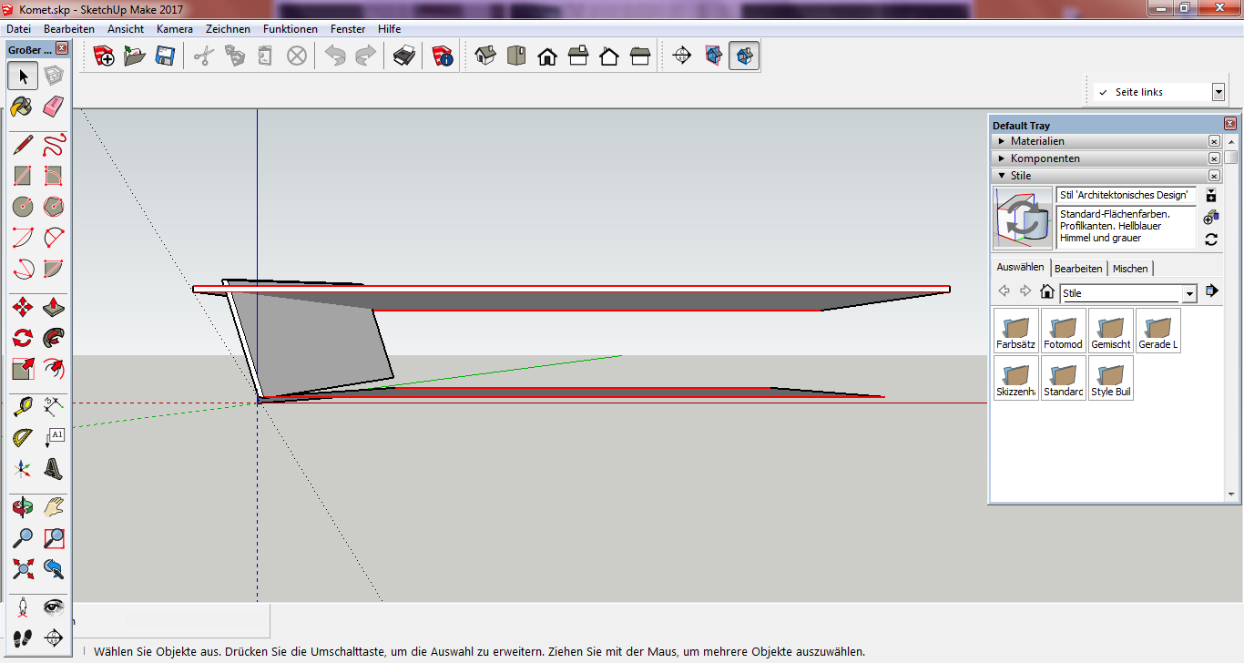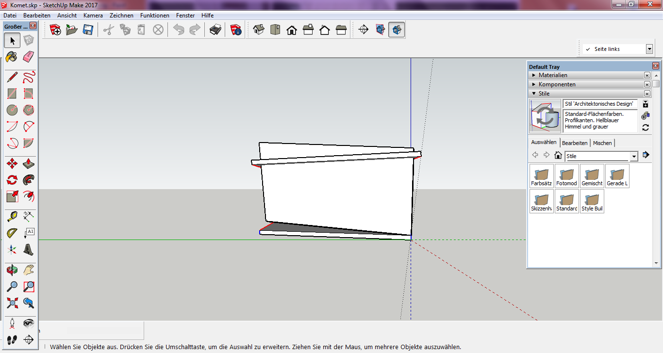 Hab auch schon probiert meine seite in der schräge wie ich sie brauche, durch die Punkte zwischen Boden und Deckel zu verbinden und diese Fläche einfach um die materialstärke aufpolstenrn bzw "drücken und ziehen" zu verwenden, dies hat aber nicht funktioniert...