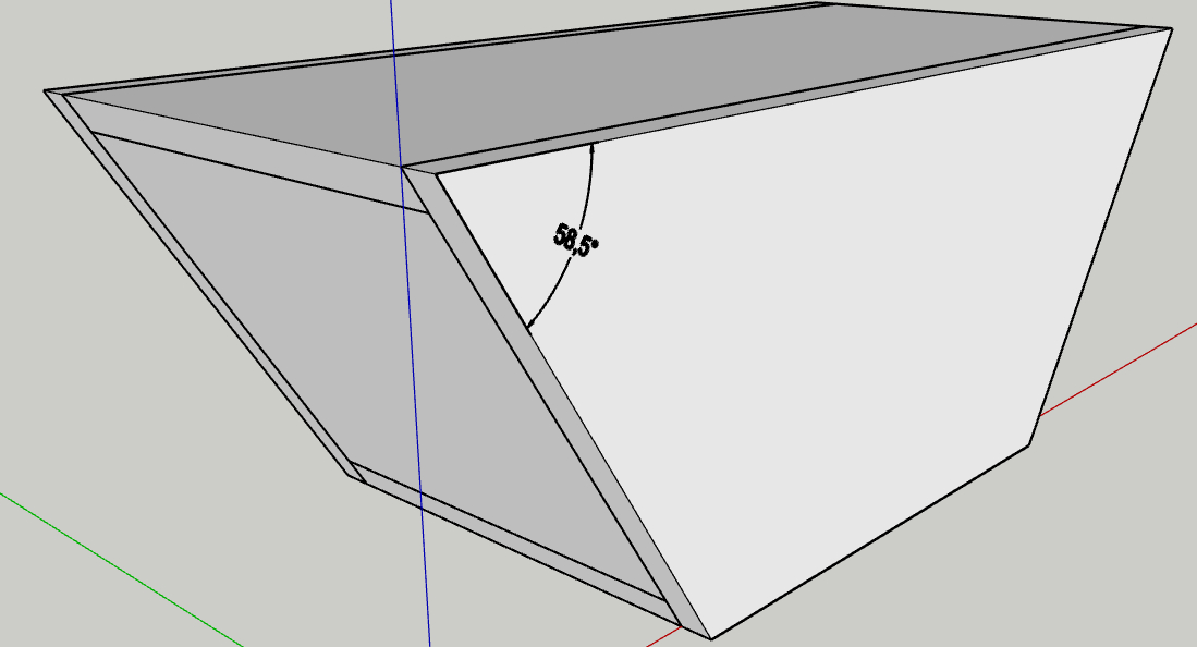 Ich habe einen Boden und einen Deckel ,sie sind unterschiedlich groß, so dass ich eine Seite von eine schräge mit 58,5° bräuchte, hab schon verschiedene Wege ausprobiert, aber ich kann meine Seite nie so drehen damit sie zwischen deckel und Boden richtig sitz.