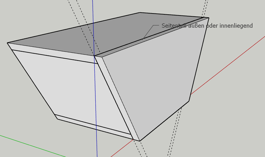 Hab auch schon probiert meine seite in der schräge wie ich sie brauche, durch die Punkte zwischen Boden und Deckel zu verbinden und diese Fläche einfach um die materialstärke aufpolstenrn bzw "drücken und ziehen" zu verwenden, dies hat aber nicht funktioniert...