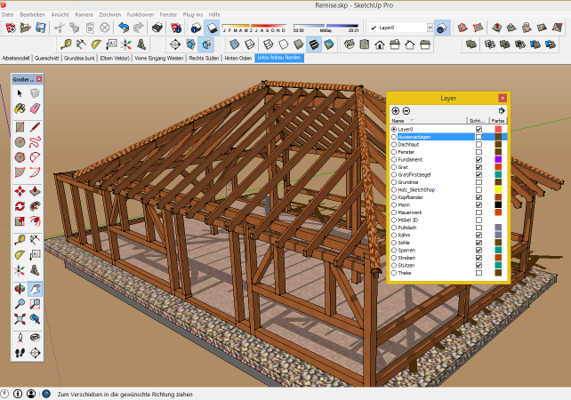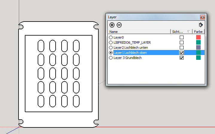 Layer 0 stellt das Modell mit allen Objekten, Gruppen, Komponenten dar.