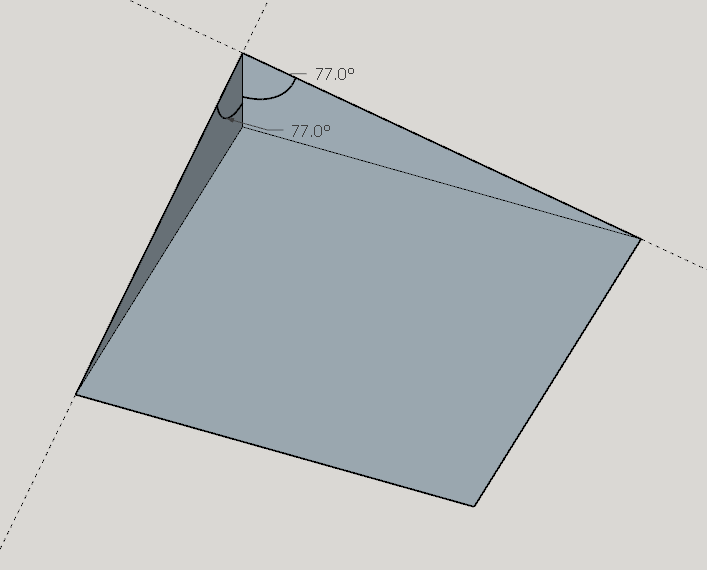 Ich denke, ich werde es mit einer schiefen Ebene versuchen, die vom SCheitelpunkt zu 2 Seiten um 13 Grad abfällt. Ich habe versucht, solch eine Ebene zu zeichnen, aber ich habe es nicht hingekriegt, sie zu füllen, wohl weil sie schief ist (siehe screenshot).
