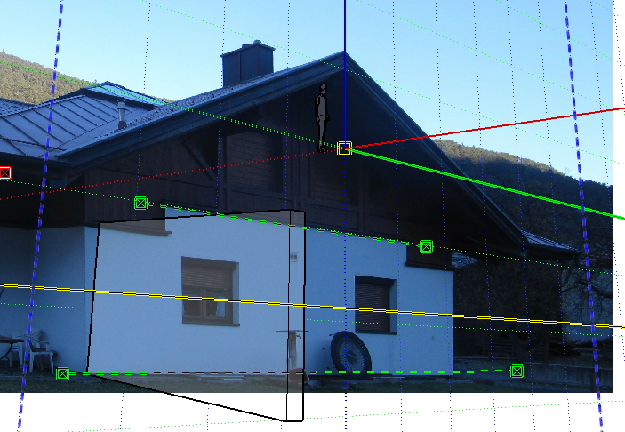 Ich habe ein Haus über Eck fotografiert das zwei flächen dargestellt werden das Foto ist ein wenig verzerrt, begradige das Foto (mit Programm Gimp) In Sketchup einfügen und X,Y Achsen an Foto ausrichten
