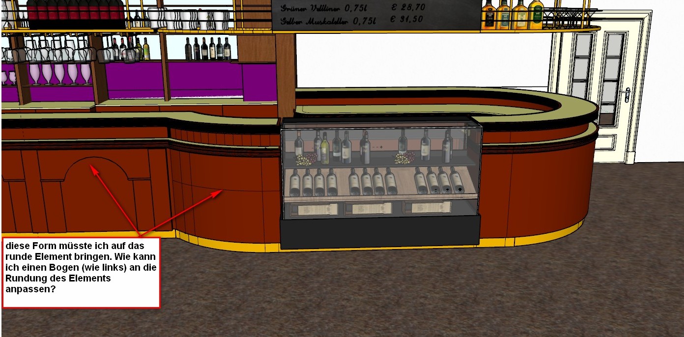 Ich habe ein Objekt (Bar) in einer runden Form. Jetzt muss ich auf die Front der Bar eine Einfräsung (mit einem Halbkreis) einzeichnen.