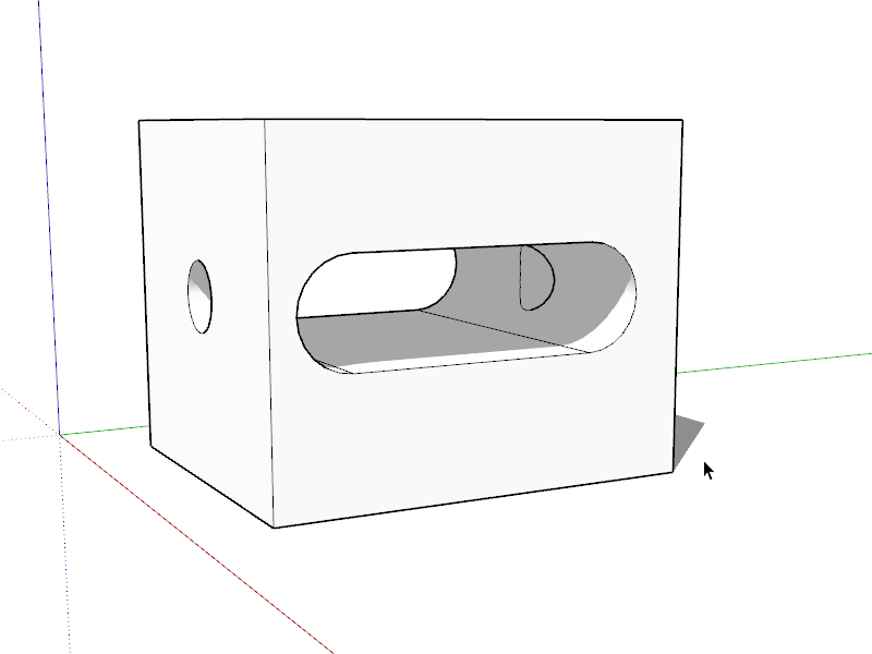Zwei Hilfslinien zeigen die Mitte der Bohrung auf die ich mit einem Kreis bis zum Rand gehen wollte. Irgendwie scheint Sketchup das nicht zu verstehen und legt den Kreis irgendwie im Raum an, aber nicht auf den Rand der Bohrung. Wer kann mir einen Tipp geben ?
