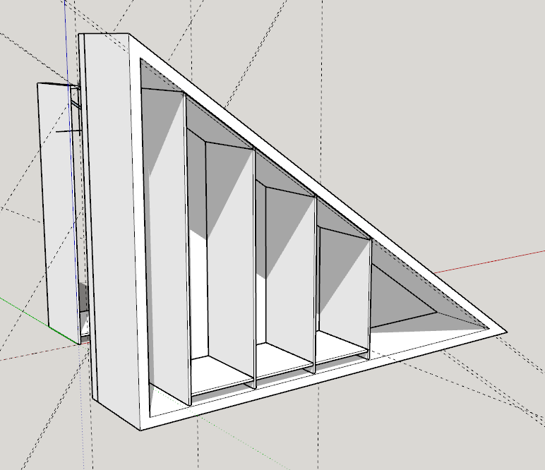 ich bin gerade dabei ein Dachschrägenregal zu planen. Bin noch relativ unerfahren mit Sketchup und verzweifle beim Erstellen der passenden Gehrungen. Anbei findet ihr das Regal.