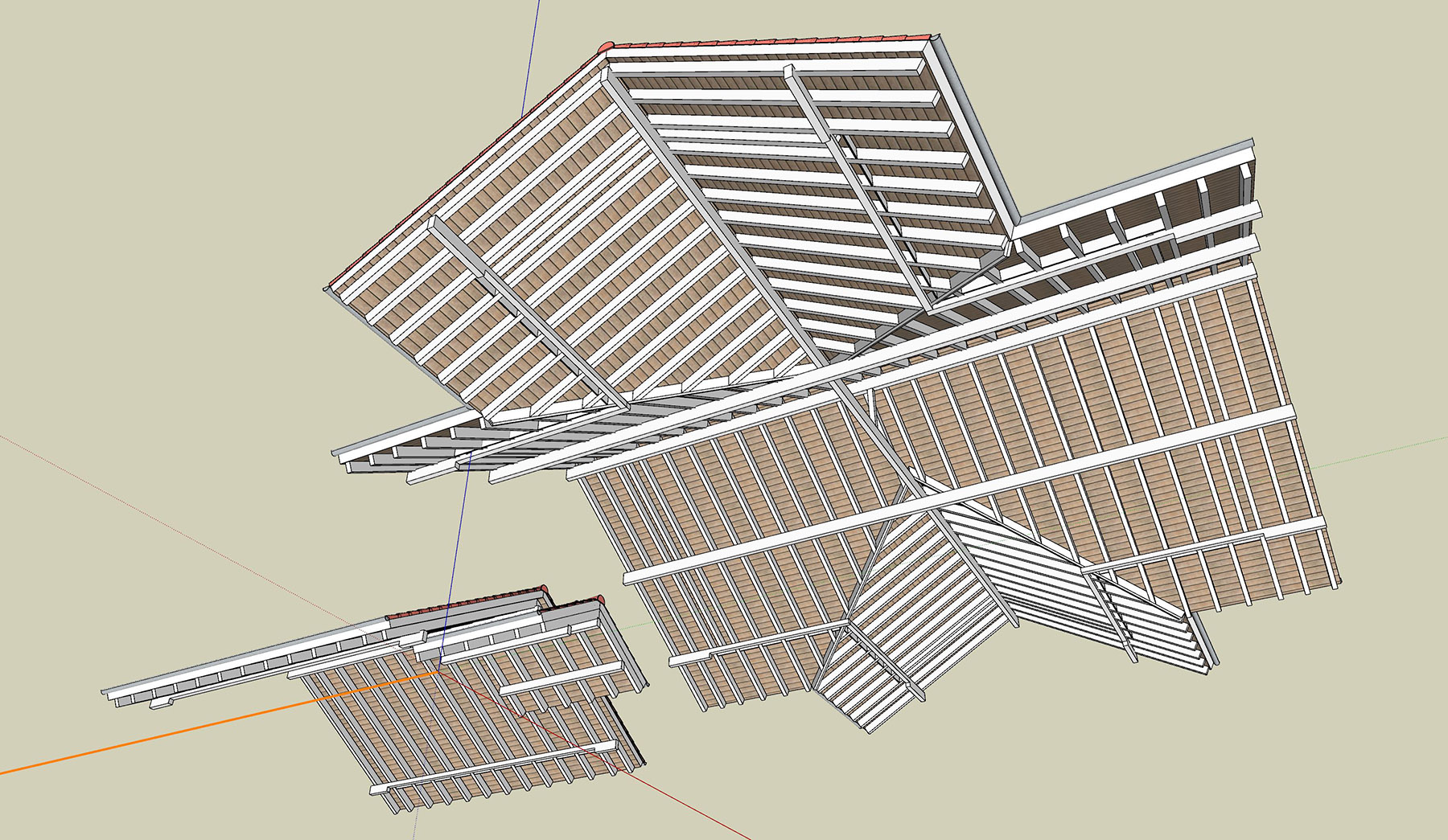 Ich mache ja von meinen SketchUp-Modellen Animationen mit Lumion (kannst ja mal in meinen Youtube-Channel reinschauen wenn Du willst, siehe meine Signatur). Mit Lumion lässt sich eine nahezu fotorealistische Qualität erreichen, aber mit der üblichen Methode, einfach eine Ziegeltextur-auf die Dachfläche zu klatschen, sieht das bescheiden aus. Deshalb habe ich jetzt mal jeden einzelnen Ziegel nach realitischen Dimensionen gesetzt. Der Ziegel ist aus dem Warehouse, aber ich musste dann noch die Ortgangziegel (Abschlussziegel an den Giebelseiten) und Firstziegel erstellen.
