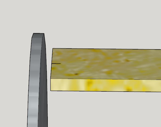 Wenn ich mich recht erinnere, dann ist bei der hinteren Kante der Abstand zum Sägeblatt anders.