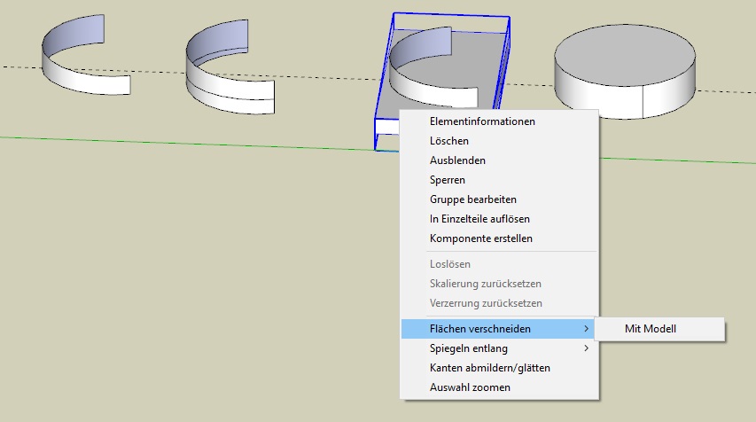 Also zuerst den Kreis mit dem gewünschten Radius, dann diesen als Zylinder hochziehen. An dem Zylinder "Endstriche" ziehen und die unerwünschten Flächen rauslöschen.