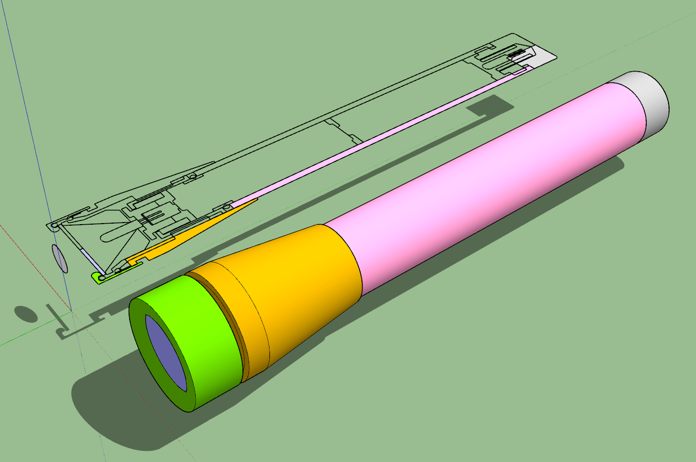 Im Inneren ist das Modell auch sehr detailliert, je nach Zweck würde ich hier auch Vereinfachen vorschlagen (Batterien, Ersatzlampe, Dichtungen, ... weglassen), hier eine Schnittansicht, die das sehr schön zeigt: