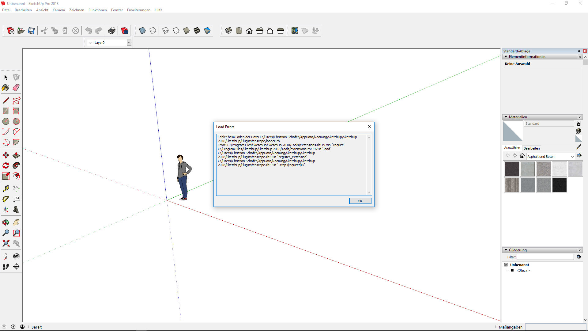 Deinstalliere per Erweiterungs-Manager, beende SU, starte SU per “Rechtsklick > Als Admin ausführen“ und installiere Enscape neu.