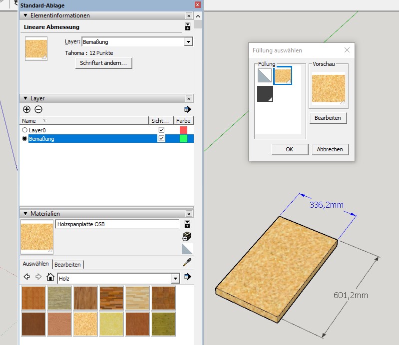 ich habe eine Platte mit Material 'Spanplatte' versehen.
