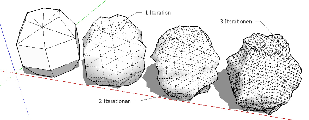 Meistens nutze ich Objekte aus dem Google Warehouse, die ich entweder für meine Zwecke übernehme bzw. leicht ummodifiziere. Grundlegendes in SU beherrsche ich in etwa. Aber bei den Felsbrocken bzw. daraus erstellten Wallen habe ich Schwierigkeiten zu erkennen wie solch Objekt erstellt worden ist. Hänge mal Screen an und meine dann die Dreiecke ect. die das Gebilde darstellen. Wie kann ich so etwas mit einfachsten Mitteln erstellen. Habe versucht evtl. bei YT ein Videotutorial dazu zufinden ist mir leider nicht gelungen. Vielleicht kann mir jemand dazu eine einfache Erläuterung geben.
