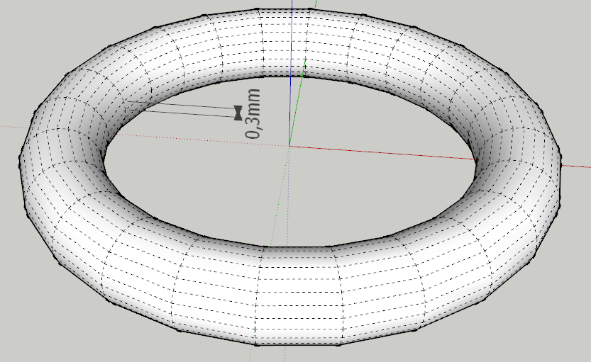 Das liegt an der Modellgröße, SketchUp hat Schwierigkeiten bei der Erstellung kleiner Flächen. Deine haben aufgrund des Radiusses von ca. 1mm des kleinen Kreises Kantenlängen im Bereich von 0,3 mm.