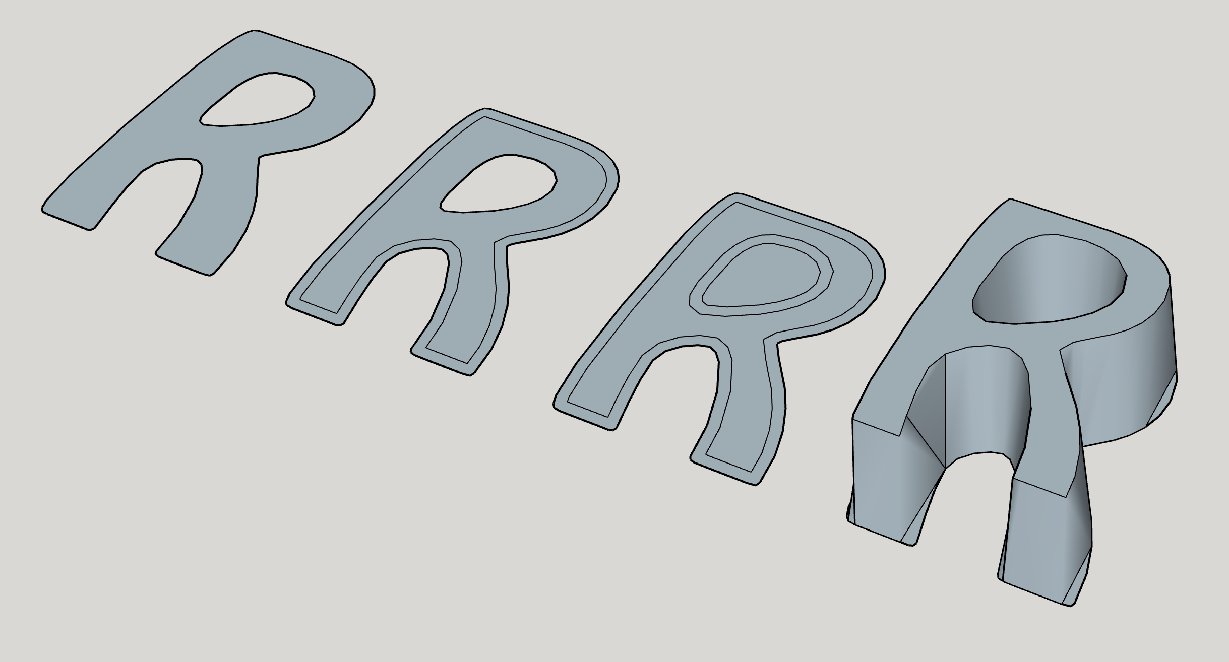 Wie kann ich eine Freiform wie z.B. einen Buchstaben konisch verjüngen.