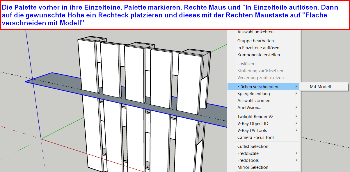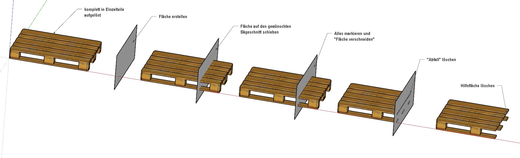 Nun finde ich die Funktion nicht wo ich die Europaletten Sägen kann so das die überstehenden Teile weg sind.