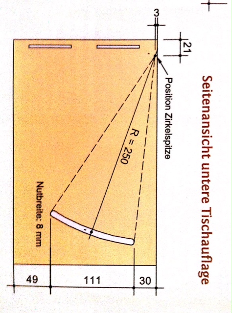 Wie geschrieben, beträgt der Radius 250mm un die Nutbreite beträgt 8 mm.