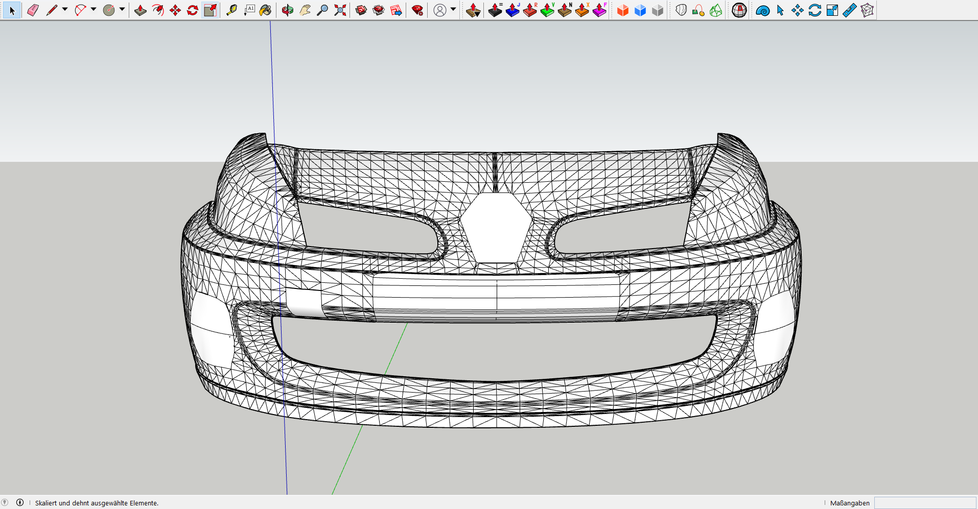 Soweit bin ich nun mit Sketchup und Curviloft gekommen. Wie man hoffentlich sehen kann ist das nur eine Außenhaut und kein Körper. Das würde ich gerne ändern.