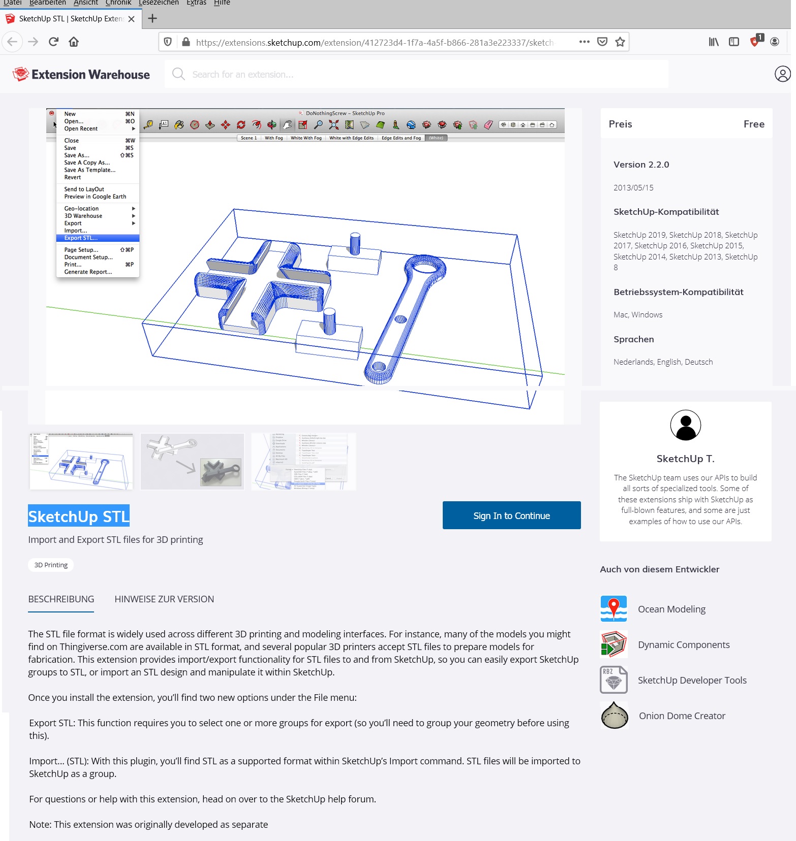 mit SketchUp etwas zu entwerfen (zu "bauen"), es abzuspeichern als .obj Datei und diese dann bei