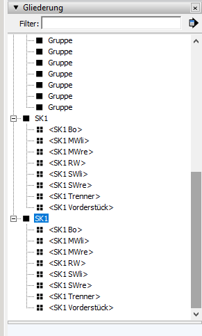 Die Teile sind momentan jeweils eine Gruppe die alle wiederum in einer Gruppe als komplette